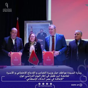 بمناسبة اليوم الوطني للأشخاص في وضعية إعاقة، نظمت جامعة ابن طفيل يوما دراسيا حول ” الإعاقة في عصر الذكاء الإصطناعي” بحضور وزيرة التضامن و الإدماج الإجتماعي و الأسرة، السيدة عواطف حيار ومجموعة من هيئات المجتمع المدني .