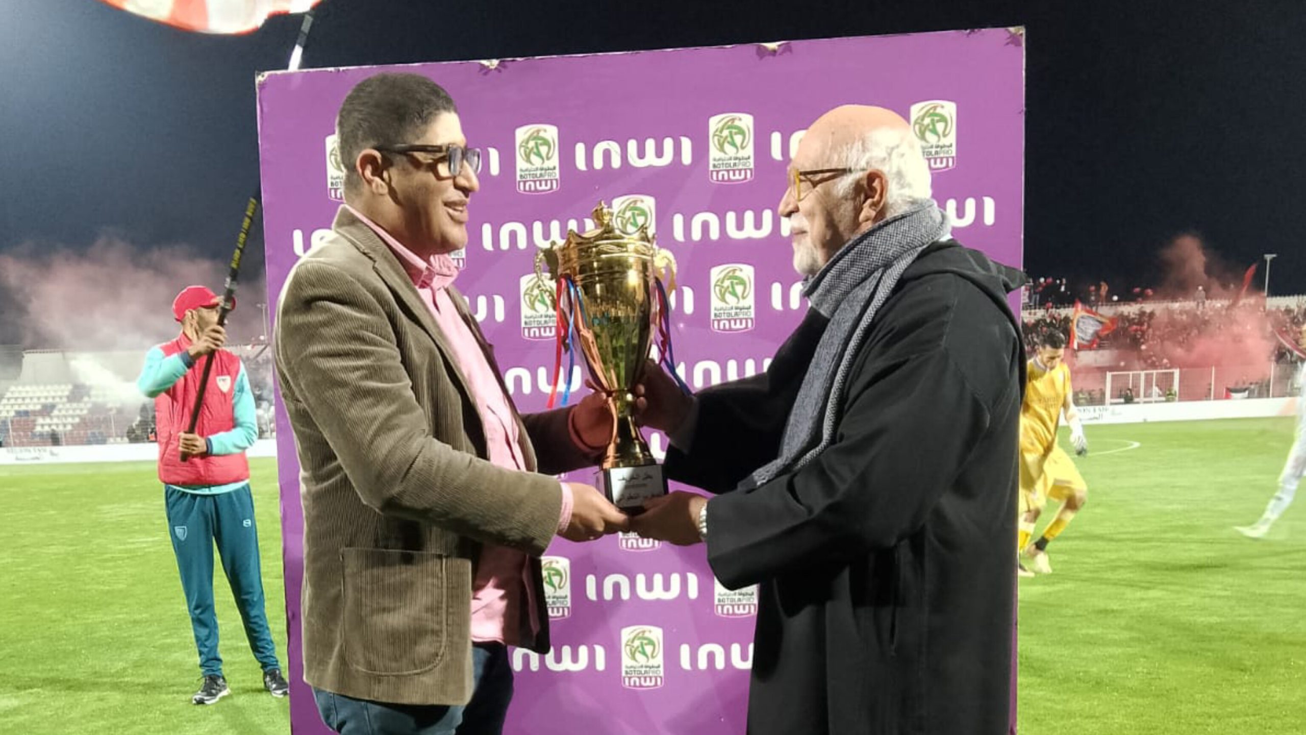 ففي مشهد غير مألوف داخل الملاعب الوطنية، قام أحد الصحافيين بتسليم الكأس لأحمد بلحداد، النائب الثاني لرئيس نادي المغرب التطواني، في مبادرة بدت غامضة من حيث الجهة التي تقف وراءها، خاصة وأن مثل هذه التتويجات عادة ما تكون مؤطرة من طرف هيئات كروية رسمية.