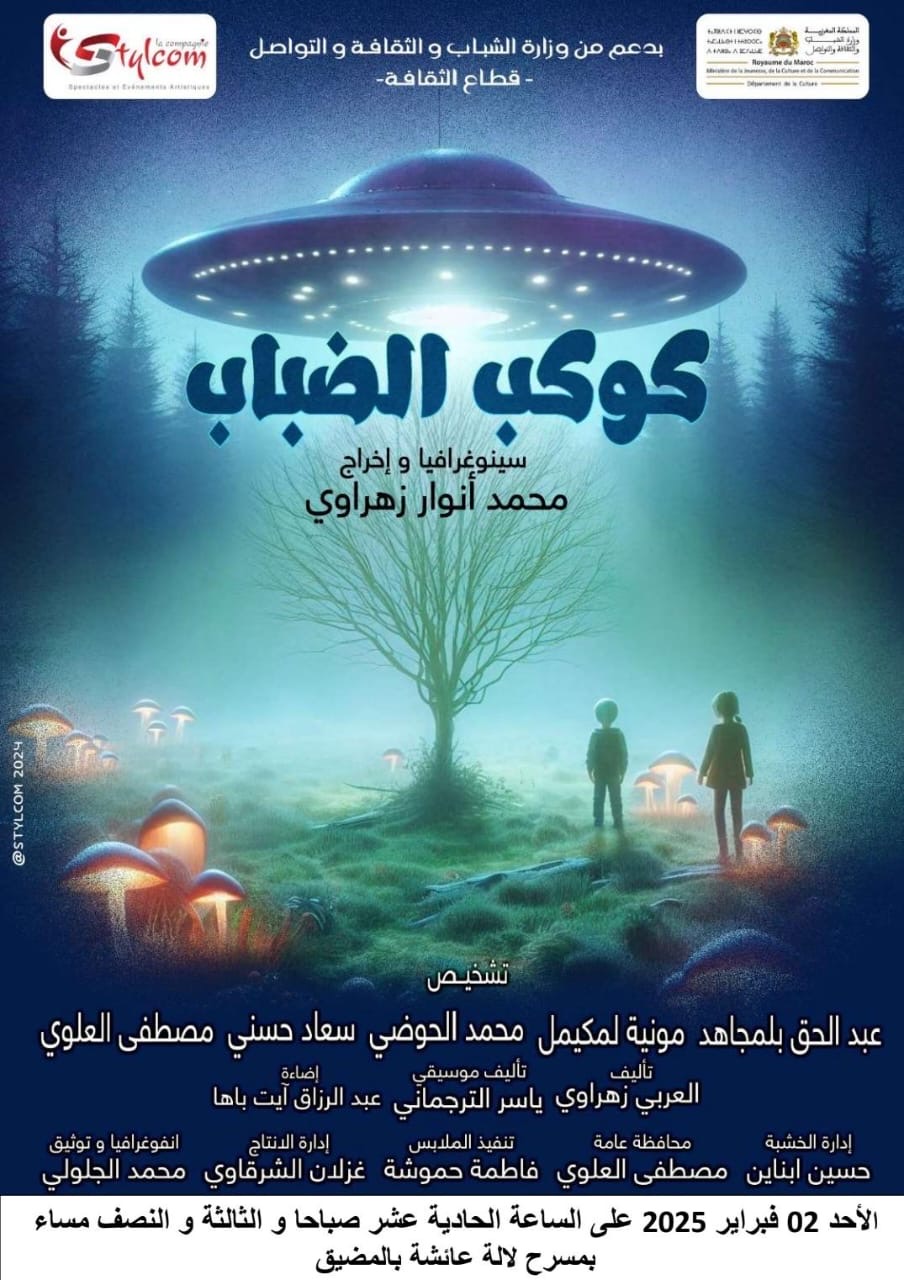 بمناسبة العرض المسرحي للأطفال “كوكب الضباب”، يسرنا دعوتكم لحضور هذا الحدث الفني المميز الذي سيُعرض يوم الأحد المقبل 2 فبراير في مسرح لالة عائشة بمدينة المضيق. العرض سيُقدَّم في مناسبتين: الأولى في الساعة 11:00 صباحاً، والثانية في الساعة 15:30 بعد الظهر.
