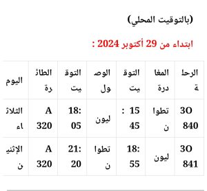 وختاما، في يوم 29 أكتوبر، ستنطلق الرحلات الجوية على خط تطوان – ليون، رابطة مدينة تطوان بمعمارها المغربي – الأندلسي العريق، مع مدينة ليون، الشهيرة بمطاعمها ومعالمها التاريخية.