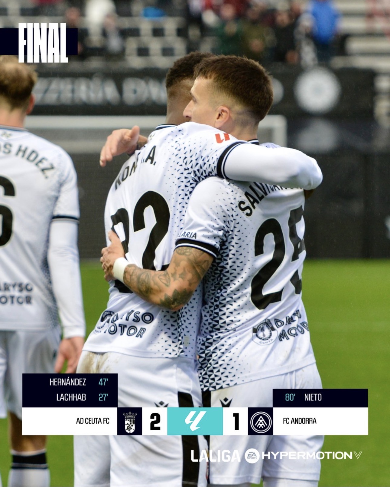 سجّل فريق نادي سبتة فوزًا مهمًا على حساب أندورا، ضمن منافسات الجولة العشرين من بطولة القسم الثاني من الدوري الإسباني، في المباراة التي احتضنها Estadio Municipal Alfonso Murube، اليوم الأحد 4 يناير 2026 على الساعة الرابعة والربع (16:15).