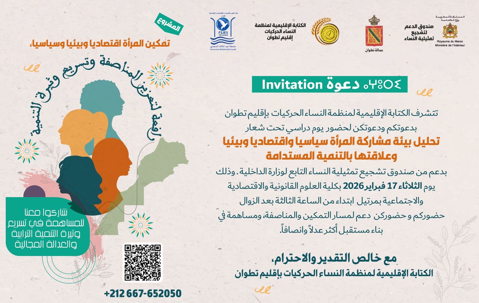 ويندرج هذا اليوم الدراسي ضمن مشروع “التمكين السياسي والاقتصادي للمرأة، رافعة لتحقيق المناصفة وتسريع وثيرة التنمية”، الممول من طرف وزارة الداخلية، والذي يهدف إلى تعزيز حضور النساء في مراكز القرار، وتقوية قدراتهن القيادية، بما ينسجم مع التوجهات الوطنية الرامية إلى تحقيق المساواة وتكافؤ الفرص.
