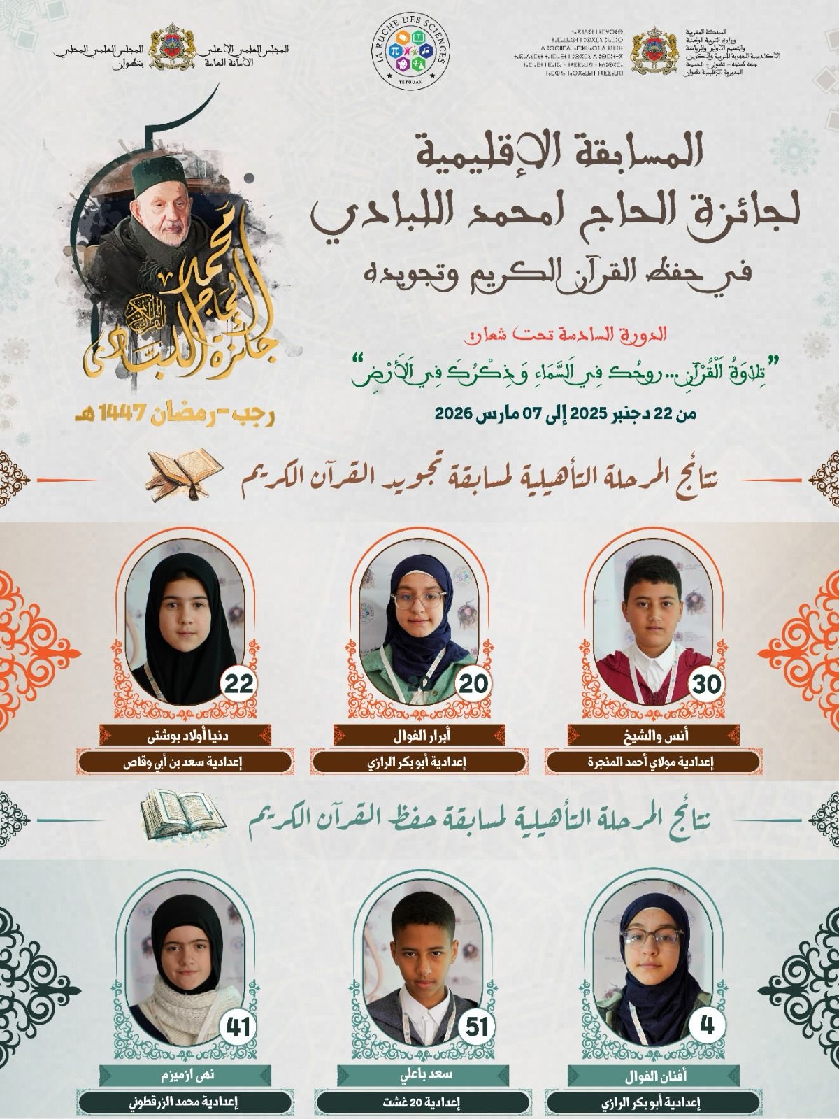 وشهدت المرحلة التأهيلية مشاركة مكثفة لعدد من المؤسسات التعليمية بالإقليم، حيث خضع المشاركون لاختبارات دقيقة أمام لجنة تحكيم مختصة، تولت تقييم مستوى الحفظ، ومدى الالتزام بأحكام التجويد، وجودة الأداء الصوتي، في أجواء طبعتها روح التنافس الشريف والانضباط.