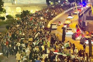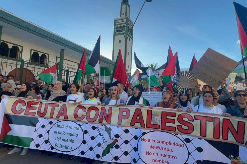 خرج الآلاف من ساكنة مدينة سبتة المحتلة، في مظاهرة حاشدة من أجل فلسطين. المسيرة إنطلقت مساء من حي “برينسيبي” حيث يقطنه المغاربة والذين يطلق عليهم في الإعلام المحلي بالمسلمين السبتيين، حيث توجهوا إلى وسط المدينة بشارع “غران فيا” .