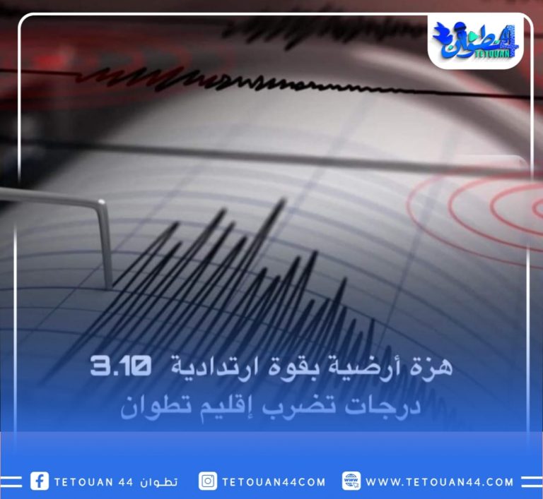أعلن المعهد الوطني للجيوفيزياء عن تسجيل هزة أرضية بلغت قوتها 3,10 درجات على سلم ريشتر، فجر اليوم السبت، بإقليم تطوان .